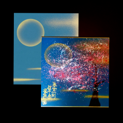 かみもん 大色紙【青・月柄 金雲と月 金ぼかし】に桜を描いてみませんか?